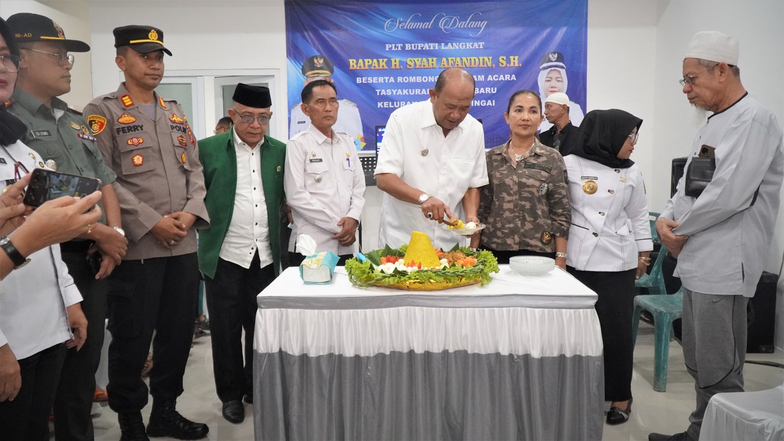 Tasyakuran ditandai pemotongan nasi tumpeng oleh Syah Afandin disaksikan Ketua DPRD Langkat, Sribana PA lalu diberikan kepada Lurah Kwala Bingai, Kartini br Sembiring.