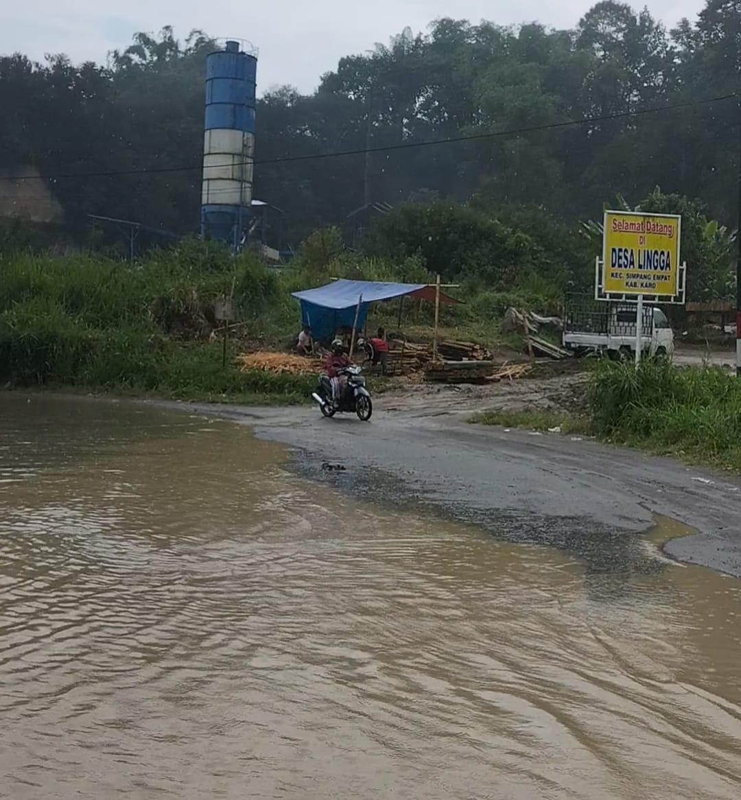 Jalan Kiras Bangun di Kabupaten Karo Rusak Parah, Genangan Air Seperti Danau