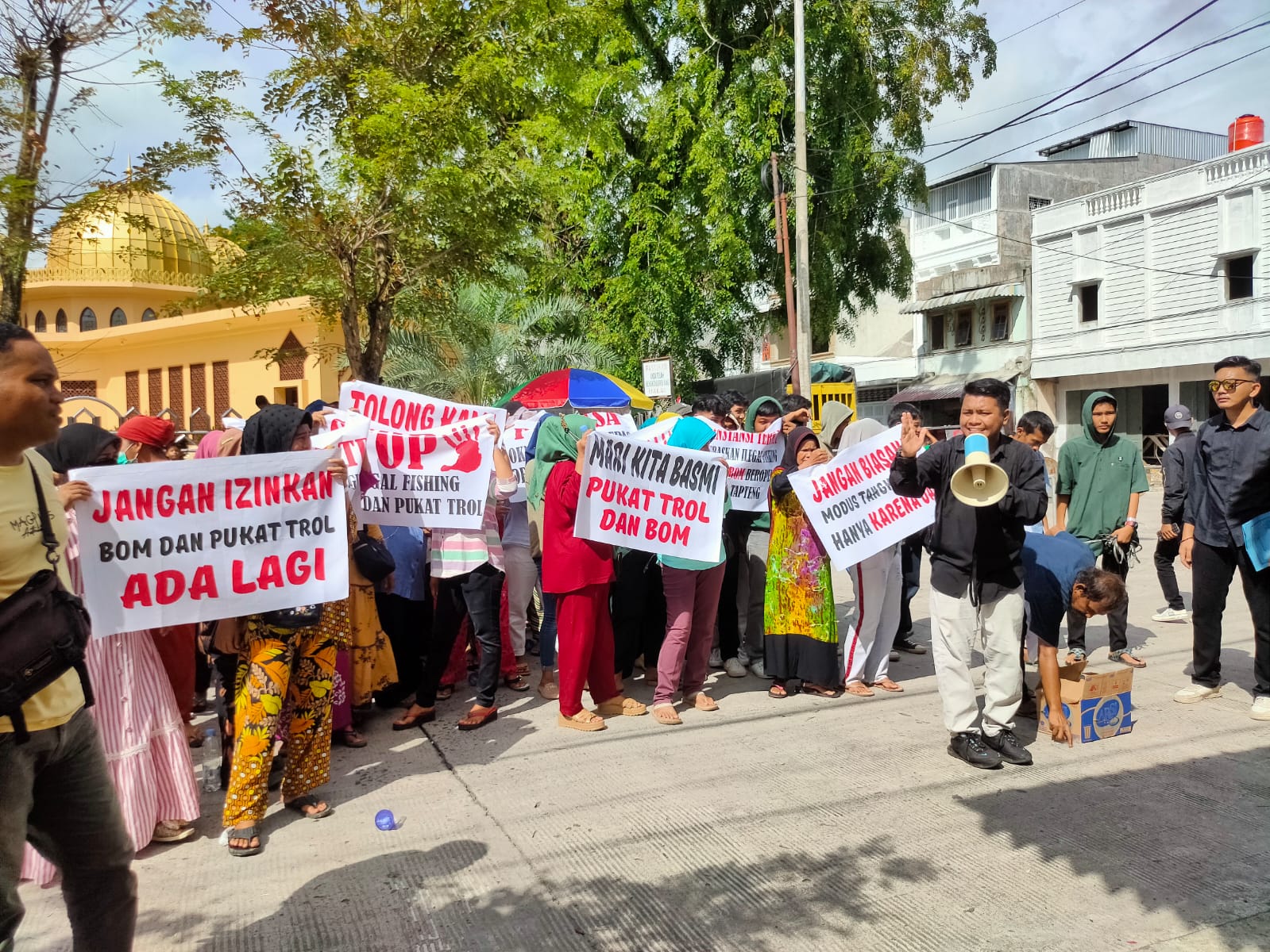 “Kami mendengar dan menduga bahwa ada pukat trawl ditangkap, yaitu KM Bintang Kehidupan, KM Bintang Timur, KM Sumber Rejeki 04. Kita duga kapal ini ditangkap, kemudian dilepaskan,”ungkap kordinator Aksi Raju Firnanda Hutagang, Rabu (3/5/2023).