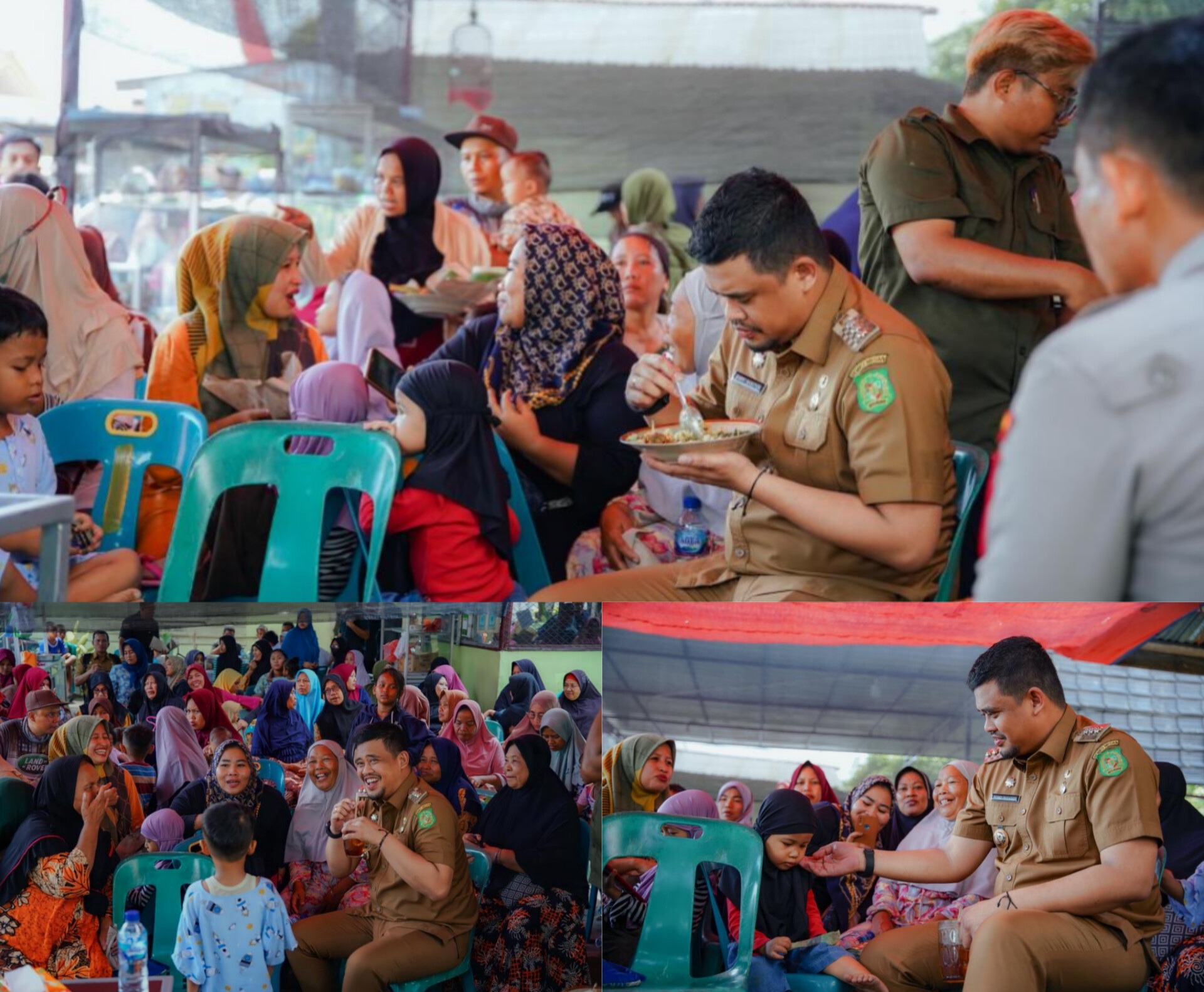 Wali Kota Medan, Bobby Nasution saat menikmati makanan rumahan bersama ratusan masyarakat Lingkungan Tiga Kelurahan Besar, Kecamatan Medan Labuhan. (Kominfo medan for Posmetromedancom)