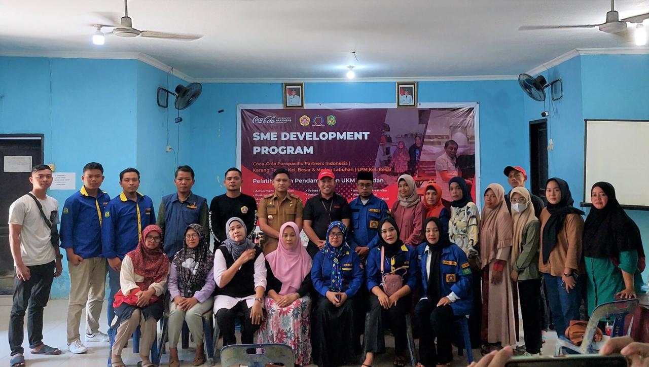 POSMETROMEDAN.com – Dalam rangka mendukung UKM/UMKM di Kota Medan khususnya di Kelurahan Besar untuk naik kelas, Coca-Cola Europacific Partners Indonesia (CCEP Indonesia) bekerja sama dengan Karang Taruna Kelurahan Besar, Karang Taruna Kecamatan Medan Labuhan, Lembaga Pemberdayaan Masyarakat (LPM) Kelurahan Besar serta, yang didukung oleh Pemerintah Kelurahan Besar melakukan kegiatan Pelatihan dan Pendampingan kepada 20 Peserta Pelaku UKM/UMKM  di Kelurahan Besar, Kecamatan Medan Labuhan.