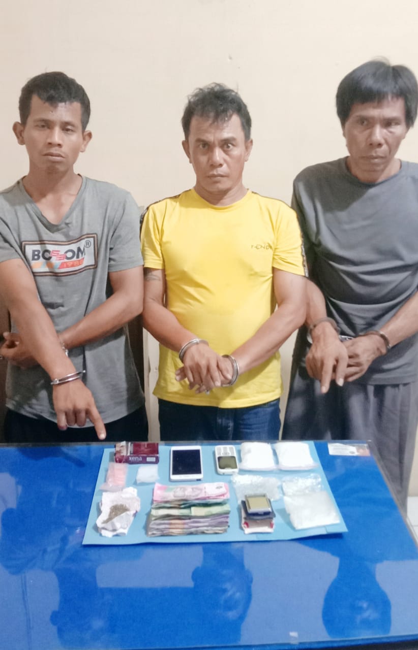 Katanya, penangkapan ketiga bandar narkotika itu diawali dari laporan masyarakat. Usai mendapat info, Kanit I dan Kanit II bersama tim melakukan penyelidikan.
