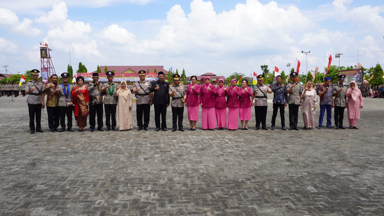 Upacara dipimipin Kapolda Sumut Irjen Pol Panca Putra Simanjuntak, di Lapangan Hinai Polda Sumut, Kabupaten Langkat.