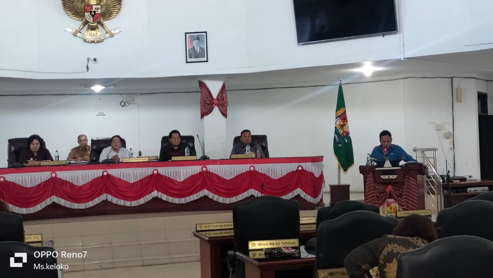 Sidang papat paripurna dalam rangka penyampaian pandangan umum fraksi-fraksi DPRD Kabupaten Karo atas rancangan peraturan daerah tentang pertanggungjawaban pelaksanaan APBD Kabupaten Karo tahun anggaran 2022, dilaksanakan pada Selasa (25/7/2023) tadi. (Marko Sembiring/Posmetromedan.com)
