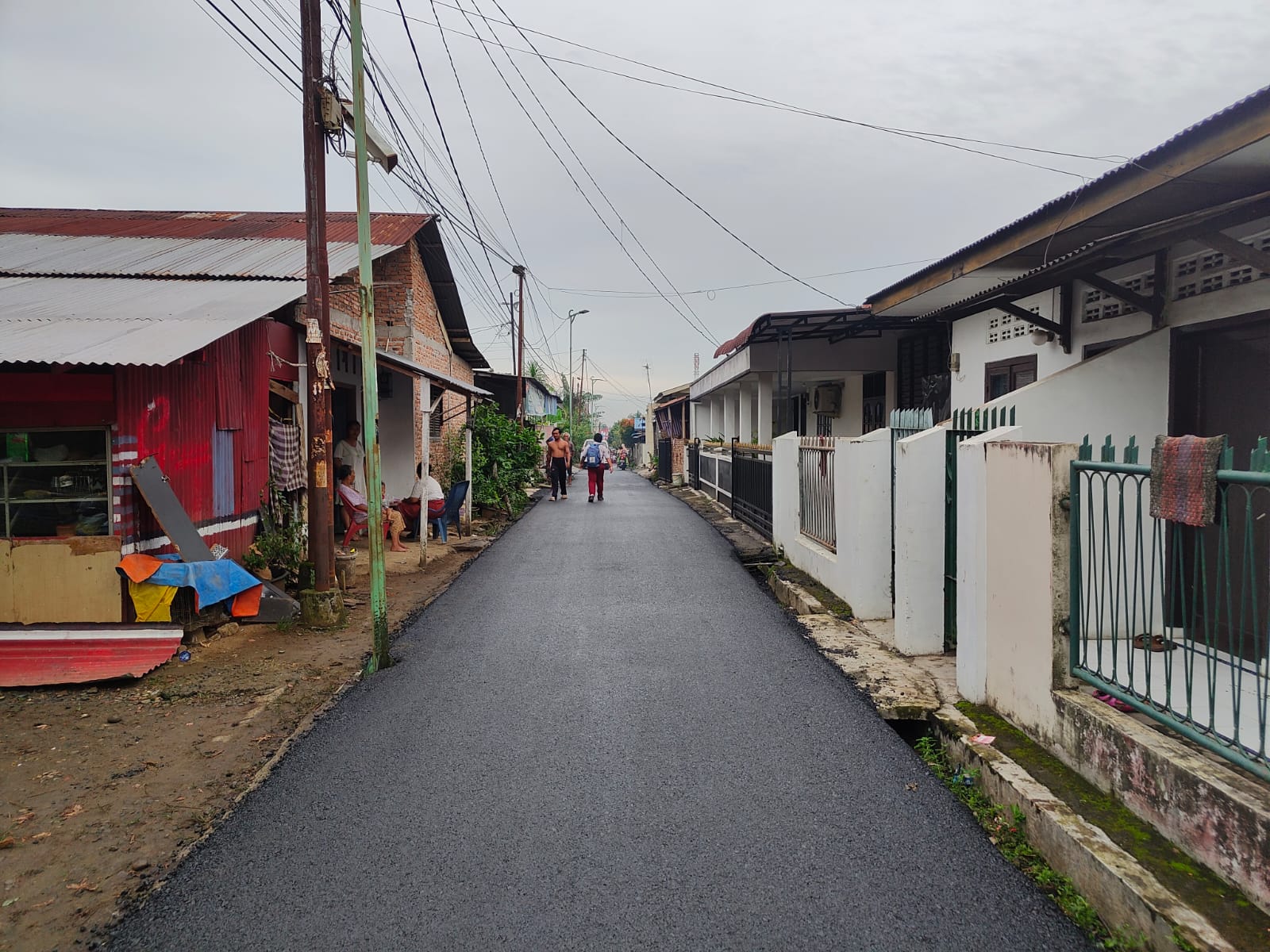 “Pengaspalan dilakukan dengan menggunakan aspal Ac-Wc setebal 5 cm sehingga kualitas ketahananya lebih baik bila dilalui kendaraan,”kata Topan Obaja Putra Ginting.