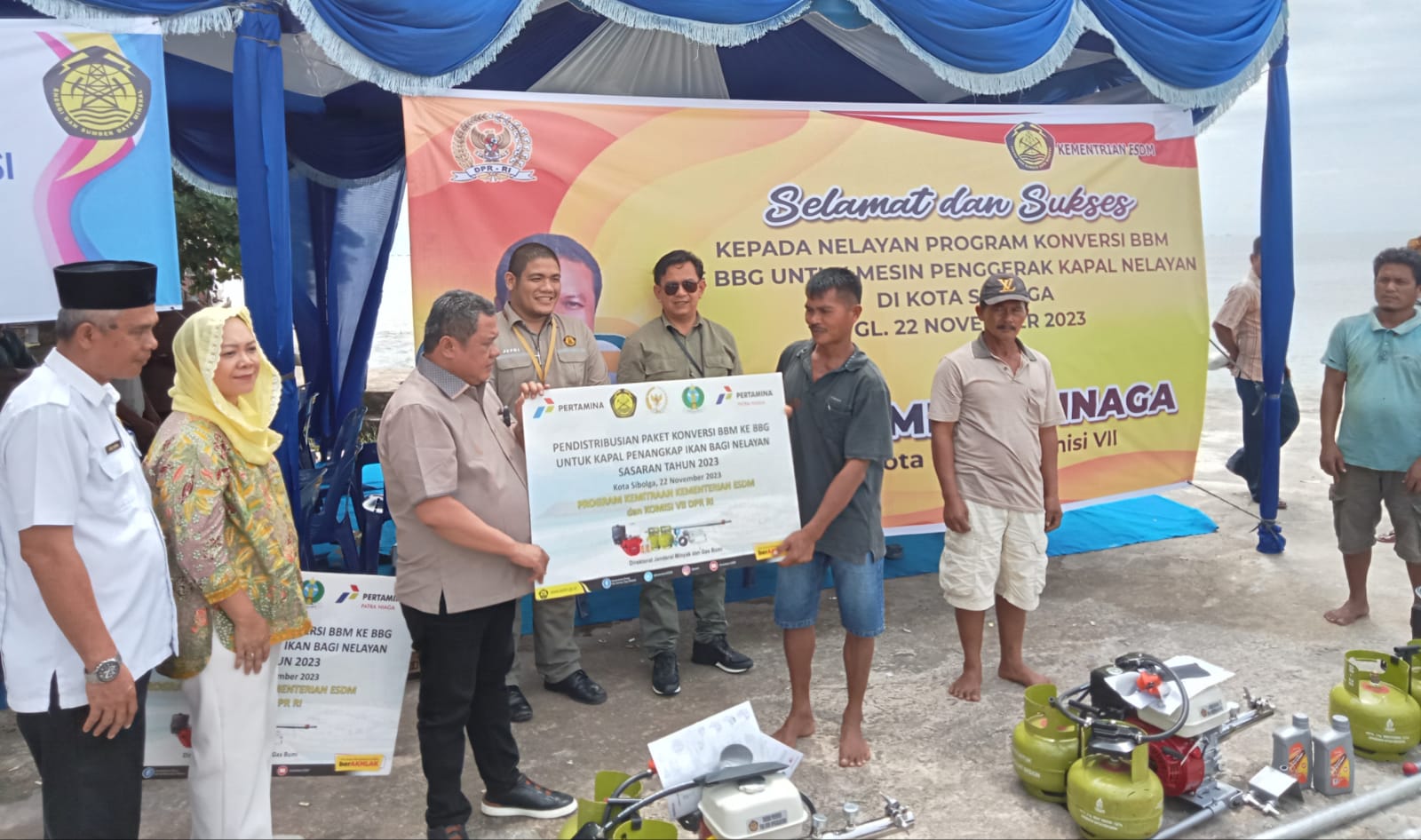 Wali Kota Sibolga, Jamaluddin Pohan dalam sambutannya dibacakan Asisten Pemerintahan dan Kesejahteraan Rakyat, Josua Hutapea mengapresiasi Kementerian ESDM dan Komisi VII DPR RI atas pendistribusian bantuan untuk nelayan di Kota Sibolga.