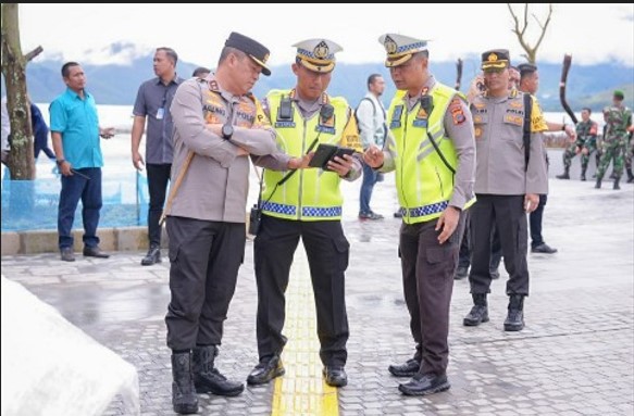 Peninjauan pertama dilakukan di Venue Samosir tepatnya di Water Front City Pangururan. Irjen Agung didampingi Kapolres Samosir AKBP Yogie Hardiman.