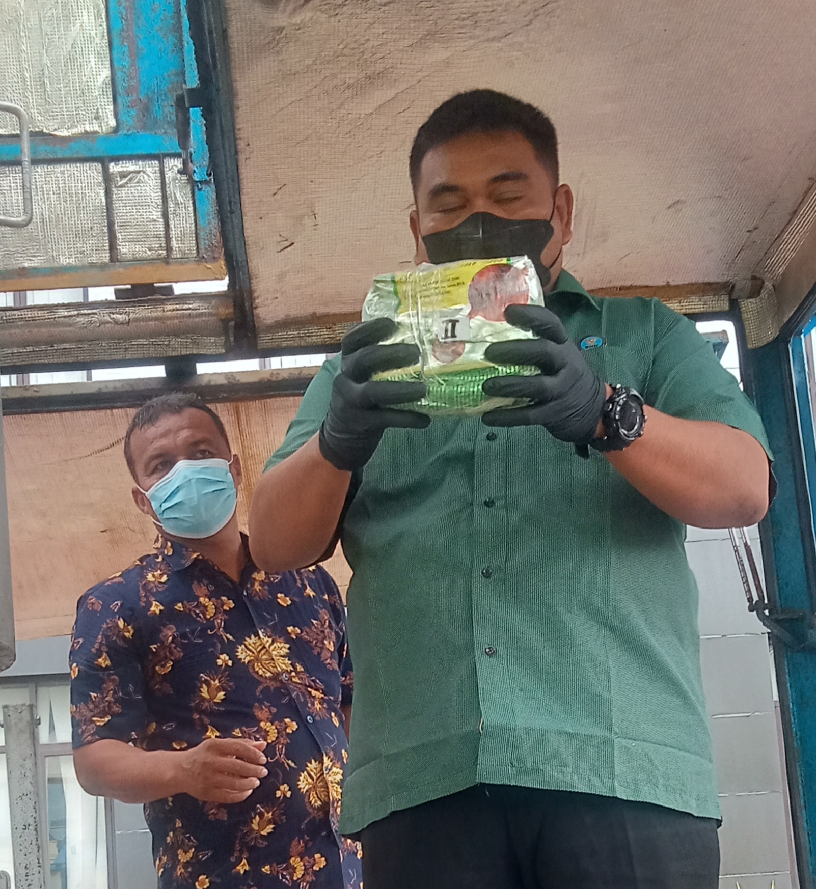 Sampai di lokasi petugas melakukan pemeriksaan, ternyata benar, barang yang dikemas dalam bungkus biskuit berisikan sabu seberat 3 Kg. Petugas lalu mengamankan tersangka, N berikur barang bukti 3 Kg sabu dan sepeda motor skuter metik yang digunakan untuk membawa sabu ke jasa pengiriman barang.