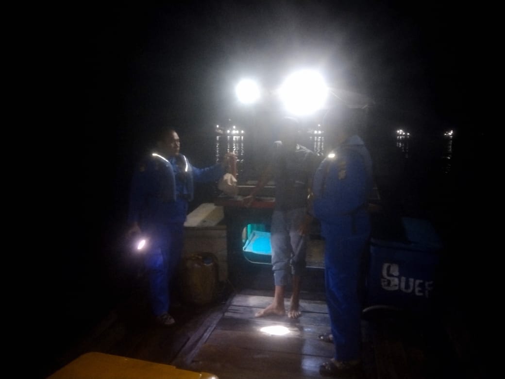 Dari hasil pemeriksaan diketahui bahwa kapal yang tidak memiliki nama dan tanda selar itu dinakhodai oleh Nasib dengan jumlah abk/penumpang 4 (empat) orang itu bermuatan fiber berisi ikan namun tidak ada di temukan barang-barang ilegal atau yang melanggar hukum.