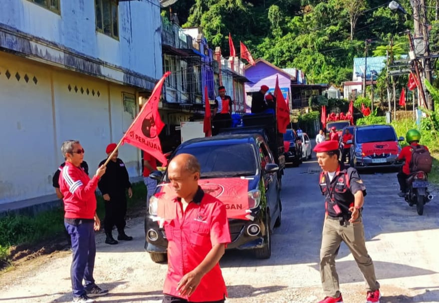 Ketua DPC PDIP Tapteng, Horas Sampetua Hutagalung lepas roadshow kampanyekan pasangan calon Presiden dan Wakil Presiden Ganjar-Mahfud. (Aris Barasa/Posmetromedan.com)