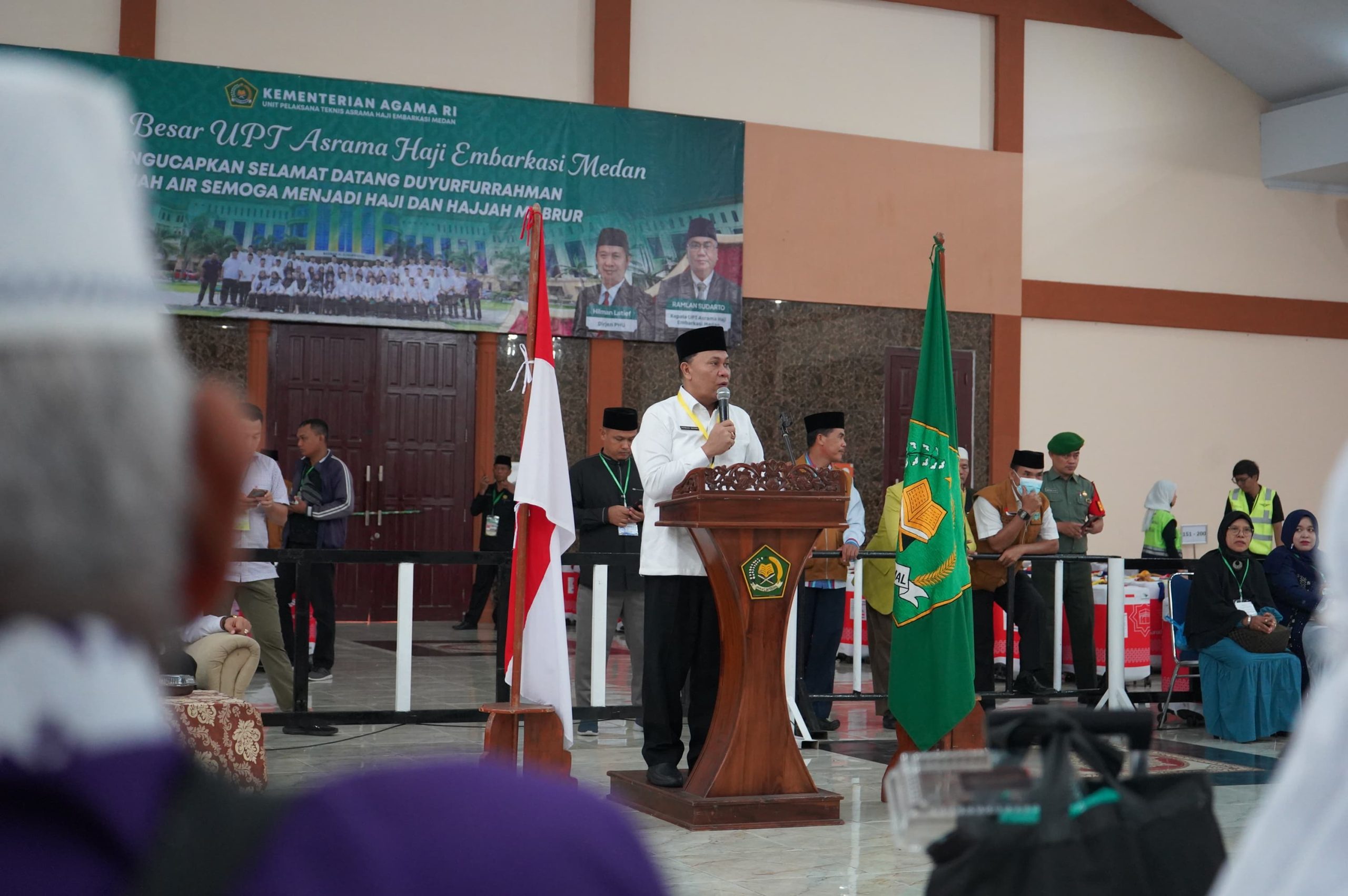 Hal tersebut disampaikan Ketua PPIH Debarkasi Medan H. Ahmad Qosbi, S.Ag, MM saat menyambut kedatangan jemaah haji Kloter 13 Debarkasi Medan di Aula 1 Madinatul Hujjaj Asrama Haji Medan, Senin (8/7/2024).