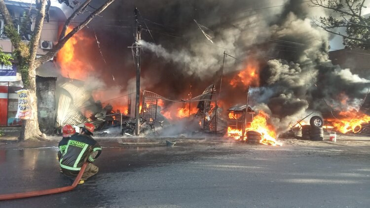 POSMETRO MEDAN Kebakaran yang terjadi di Jalan Flamboyan Raya, Tanjung Sari, Kecamatan Medan Selayang, Kota Medan, pada Jumat (9/8/24) sore menghanguskan 9 unit rumah. Seluruhnya merupakan tempat usaha dan kos-kosan.