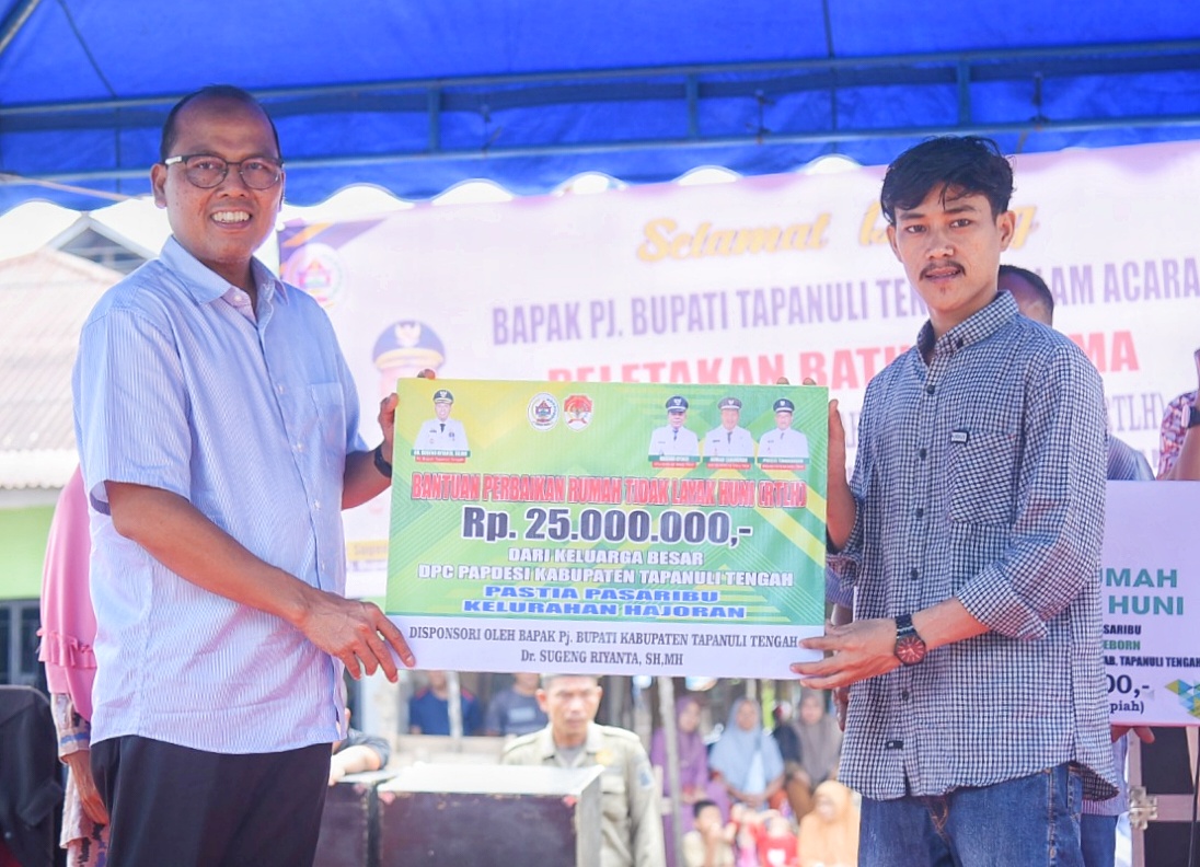 Pj Bupati mengatakan, Kita tadi sama sama sudah melihat peletakan Baru Pertama Pembangunan Rehab Rumah Tidak Layak Huni, yang bersumber dari dana Donasi atau dari pihak Ketiga yang tidak mengikat, dikumpul oleh teman teman PAPDESI Tapteng dan dari Baznas Tapteng, ada 2 bangunan di Kelurahan Hajoran dan 1 di Desa Jago jago Kecamatan Badiri, inilah semangat gotong royong dan menjadi bukti kalau kita niatnya baik, langsung dilaksanakan tidak perlu berlama lama dengan bukti nyata membantu pembangunan RTLH warga kurang mampu, “Semoga bantuan yang kita berikan langsung bermanfaat, kiranya kedepan taraf hidupnya akan meningkat bisa keluar dari zona kemiskinan ekstrim.”