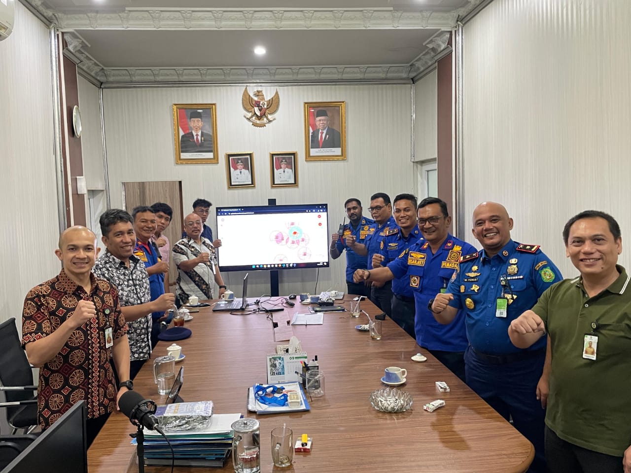 Kepala Dinas Kominfo Kota Medan, Arrahman Pane, S.Stp foto bersama usai kegiatan Aplikasi Mercy Pak Damkar, Kamis (29/8/24).