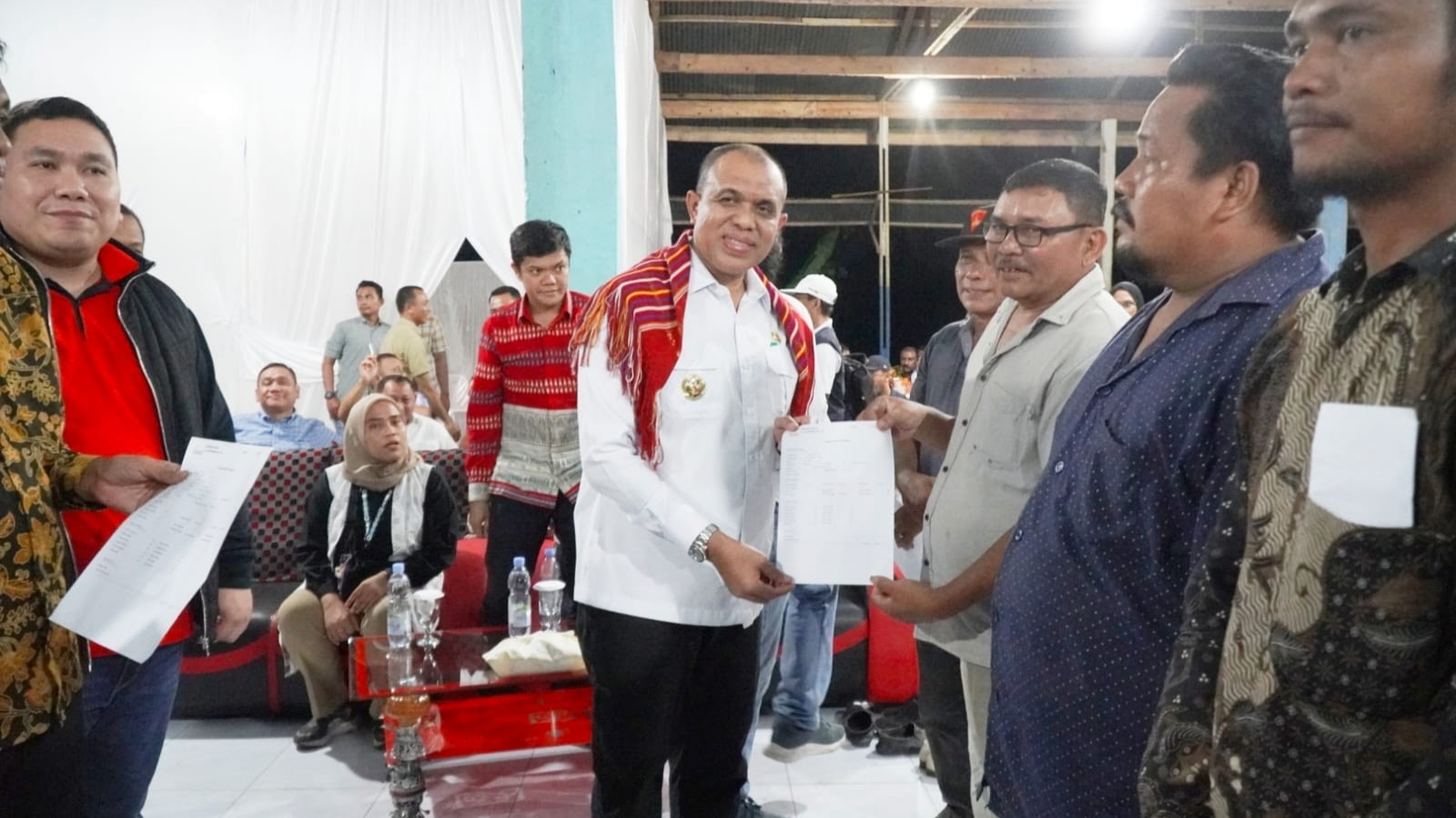 BSPS untuk memperbaiki rumah warga diserahkan dalam sebuah acara di Jambur Graha Purnama Desa Pasar 8 Namo Terasi, Kamis (13/9/2024) malam.