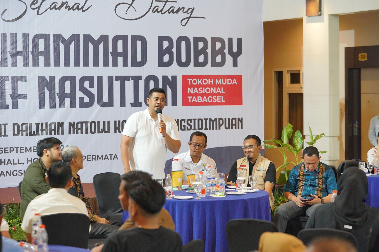 POSMETRO MEDAN – Calon Gubernur Sumatera Utara Nomor Urut 1 (Satu), M. Bobby Afif Nasution memaparkan program kerjanya dihadapan para pengusaha muda yang tergabung dalam Himpunan Pengusaha Muda Indonesia (HIPMI) se Kawasan Tapanuli bagian selatan (Tabagsel) di Mega Permata Hotel, Padangsidimpuan, Sabtu (28/9/2024).