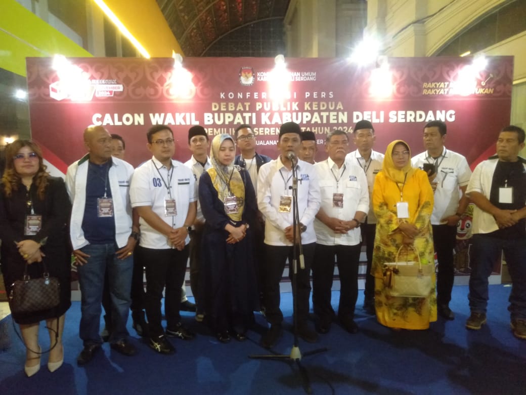 Dalam debat, tiga kandidat yang beradu argumen dengan materi yang diajukan oleh panelis. Adapun materi debat yang di anuisi KPU Deliserdang melalui narasumber dan penguji yang telah disiapkan. Tiga kandidat yaitu Calon Wakil Bupati Deliserdang nomor urut 01 Junaidi Parapat, Calon Bupati nomor urut 02 Lom Lom Suwondo dan Calon Nomor urut 03 Bayu Sumatri Agung.