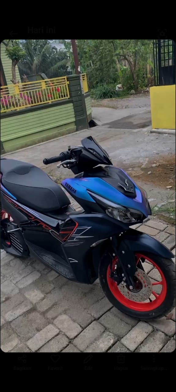 Satu unit sepeda motor Yamaha Aerox warna biru hitam plat nomor polisi BK 2996 ALX dibawa kabur kawanan geng motor.