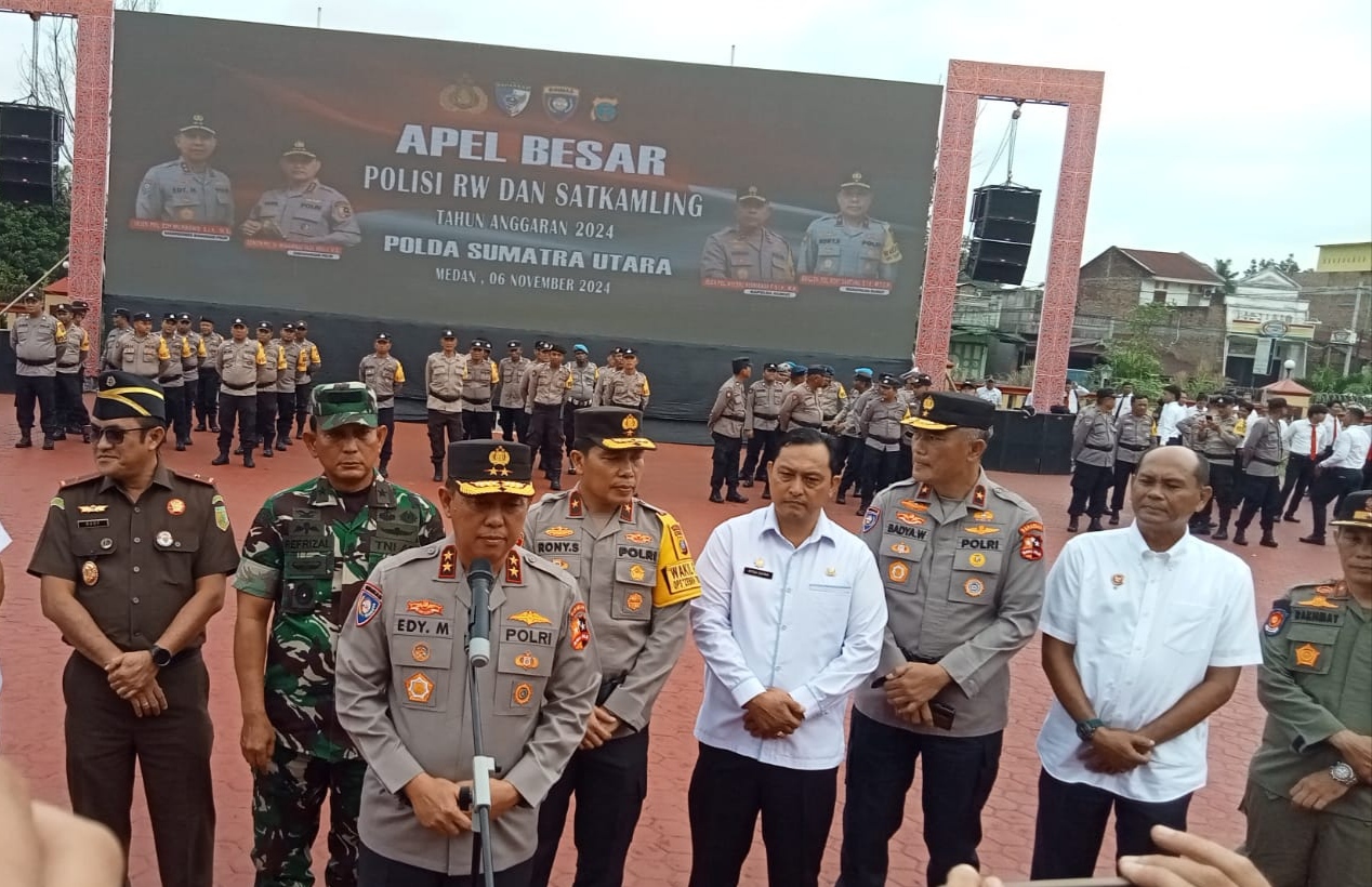 “Untuk mewujudkan (keamanan) itu Polri tidak bisa sendirian, tetapi bersama stakeholder yang lain harus berkolaborasi aktif, ,ujar Edy Murbowo didampingi Waka Polda Sumut, Brigjen Pol Rony Samtana saat Launching Polisi RW dan Satkamling di Lapangan KS Tubun Mapolda Sumut, Rabu (6/11).