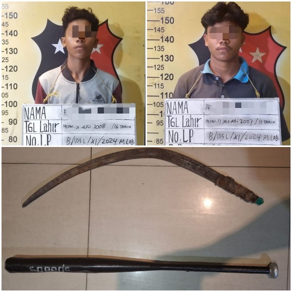 Keduanya ditangkap pada Minggu (24/11/2024) di Jalan KL Yos Sudarso, Kelurahan Martubung dengan barang bukti berupa satu tongkat pemukul baseball dan satu celurit.