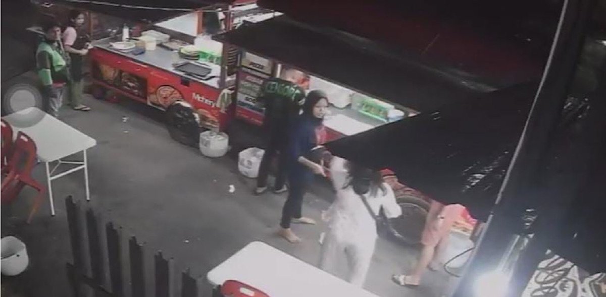 Tak lama kemudian, Fladiniyah dalam video itu terlihat melemparkan sesuatu benda ke pedagang tersebut. Terlihat Fladiniyah pun beberapa kali mencoba melukai pedagang itu, yang membuat orang disekitarnya mencoba melerai perkelahian tersebut.