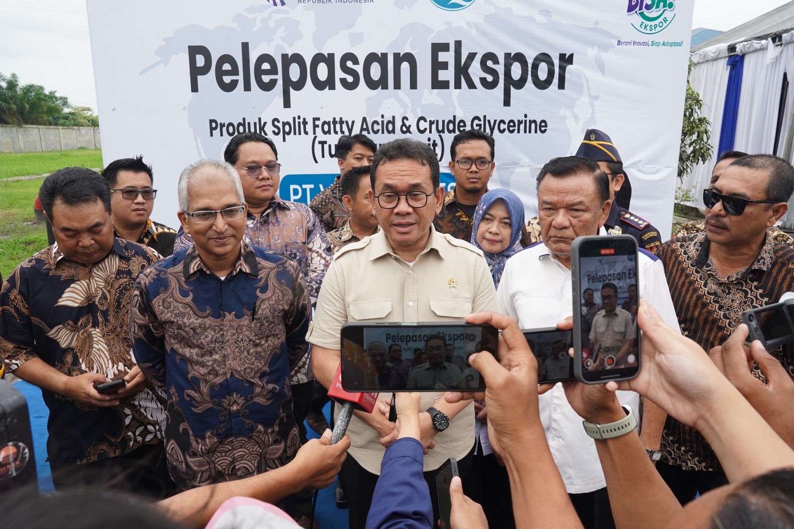 POSMETRO MEDAN – Menteri Perdagangan Budi Santoso melepas ekspor sepuluh kontainer produk turunan sawit, yaitu oleochemicals berupa split fatty acid dan crude glycerine, senilai USD 420 ribu atau setara Rp6,75 miliar ke India.