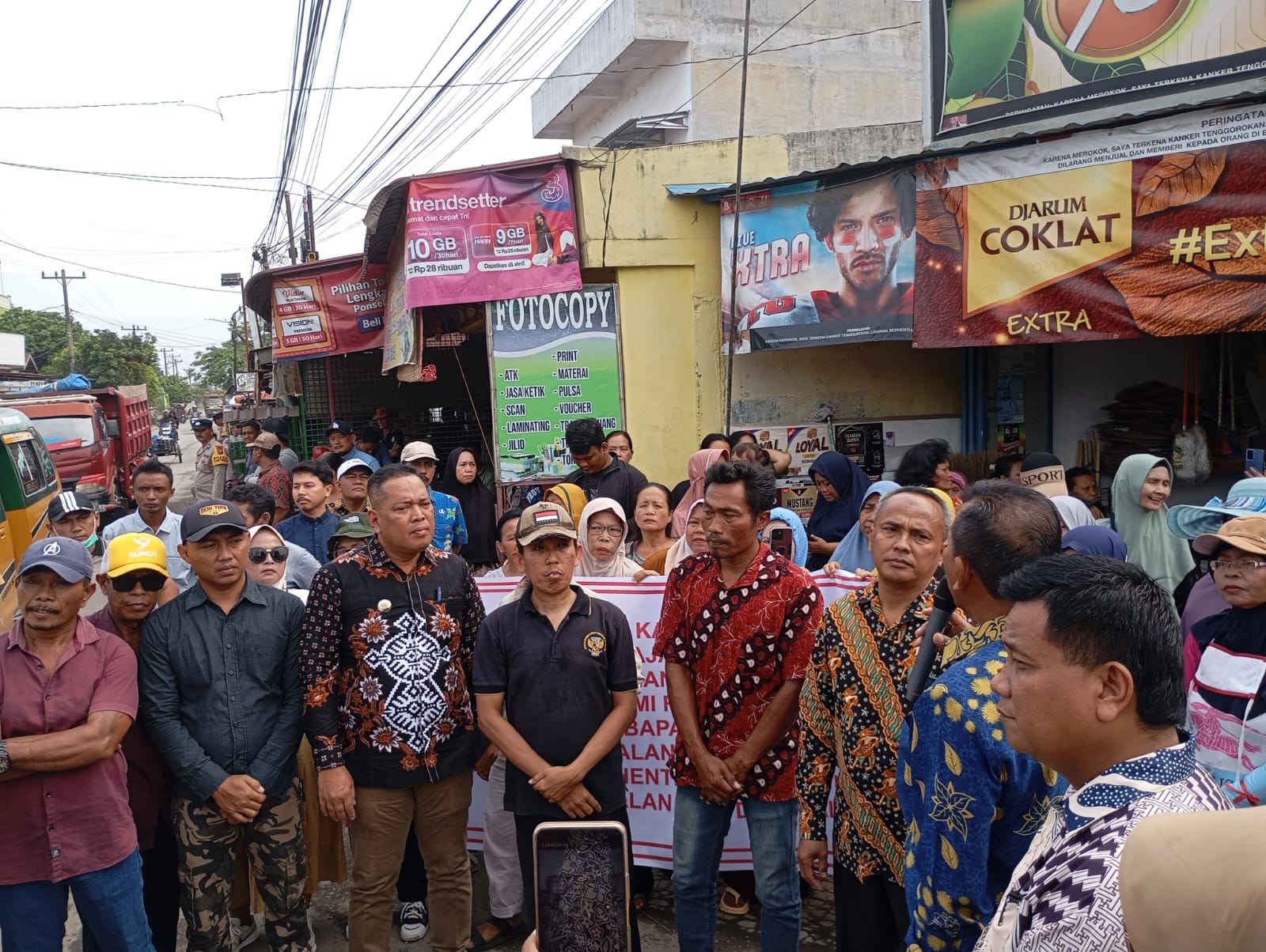 Camat Tanjung Morawa bersama perwakilan Dinas SDABMBK menemui warga demo
