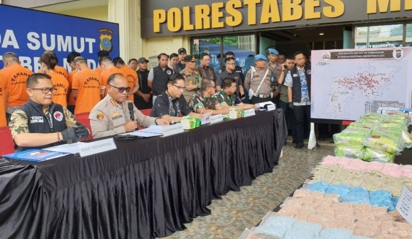 POSMETRO MEDAN – Personel Sat Res Narkoba Polrestabes Medan berhasil menangkap 8 (delapan) orang terkait peredaran narkoba. Selain menangkap bandot narkoba, Kepolisian juga menyita 34 Kg narkotika jenis sabu, 18.219 butir ekstasi dan 34 botol ketamine.