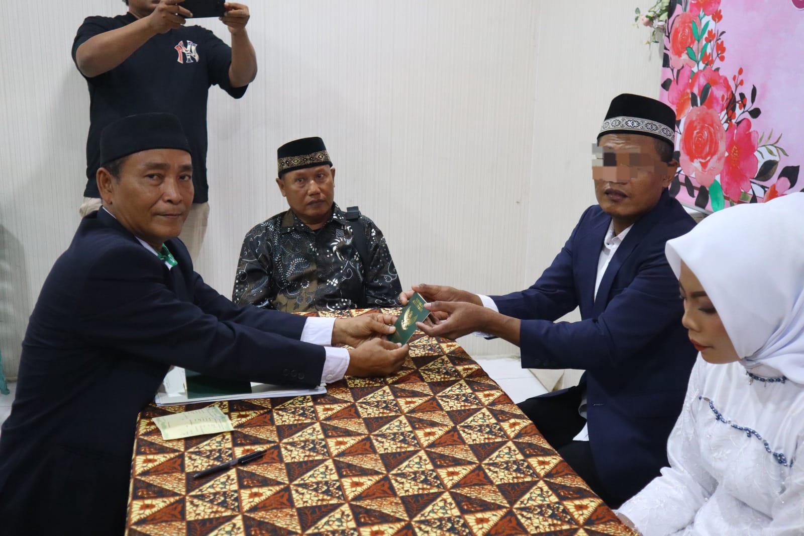 Proses Akad nikah tersebut dipandu oleh Tuan Jadi dari KUA (Kantor Urusan Agama). Kemudian kedua mempelai menerima buku Akad nikah pertanda sahnya pernikahan dengan disaksikan Kasat Resnarkoba, personil Sat Resnarkoba dan saksi-saksi dari keluarga kedua mempelai.