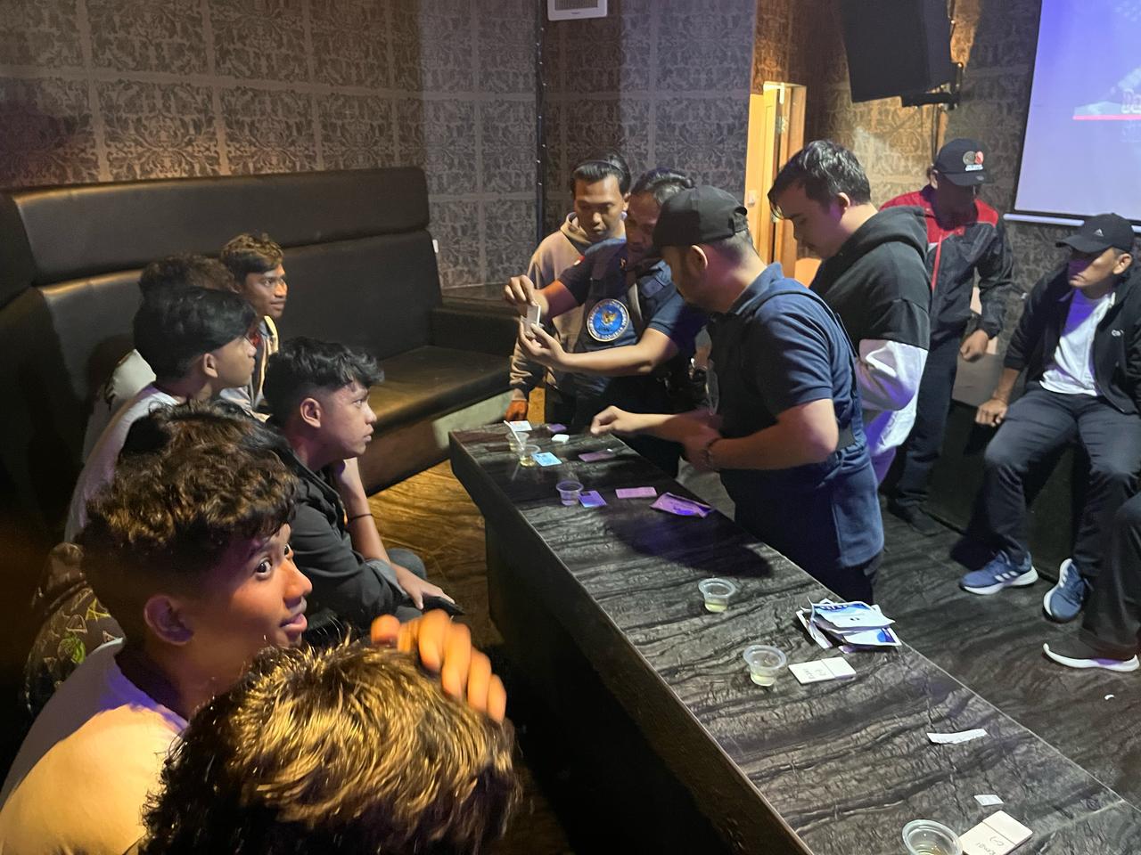 Setelah dilakukan penggeledahan tidak ada ditemukan barang bukti narkoba. Selanjutnya Tim gabungan menemukan 16 orang laki laki didalam ruangan KTV dan dilakukan test urine yang hasilnya negatif (-) menggunakan Narkotika.
