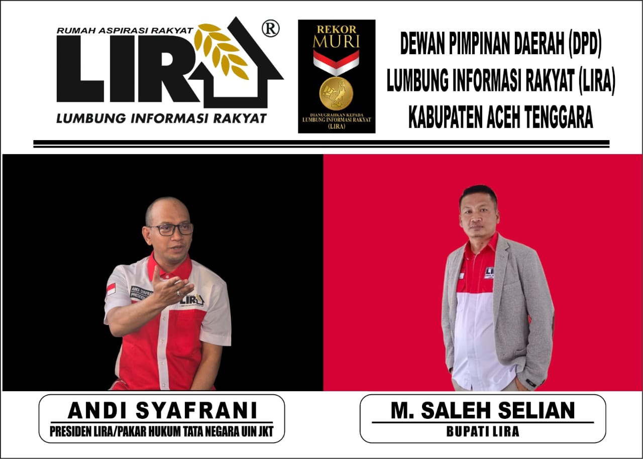 Dalam pernyataan resminya, Bupati DPD LIRA Aceh Tenggara, M. Saleh Selian, menegaskan bahwa lembaga yang sah menggunakan nama Lumbung Informasi Rakyat (LIRA) adalah organisasi yang dipimpin oleh Andi Syafrani, sesuai dengan Surat Keputusan dari Kementerian Hukum dan HAM Republik Indonesia (Kemenkumham RI).