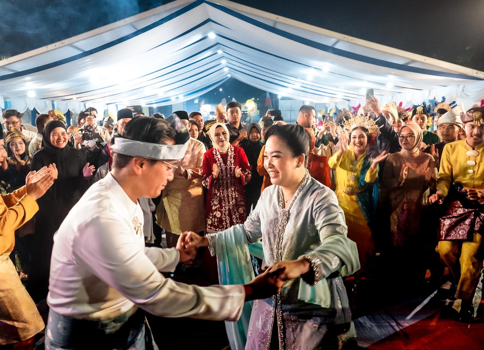 Wali Kota Medan Rico Tri Putra Bayu Waas dan Ketua TP PKK Airin menari Melayu bersama pada malam penutupan Gemes ke-8 Tahun 2025, Sabtu (24/5/2025) malam.