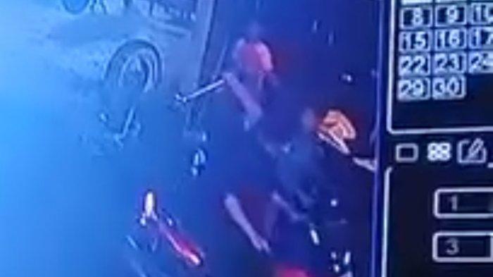 Korban yang hendak membeli es, tiba-tiba didatangi oleh sebuah sepeda motor Yamaha N-Max merah berboncengan langsung memukuli kepala korban dengan kunci roda.