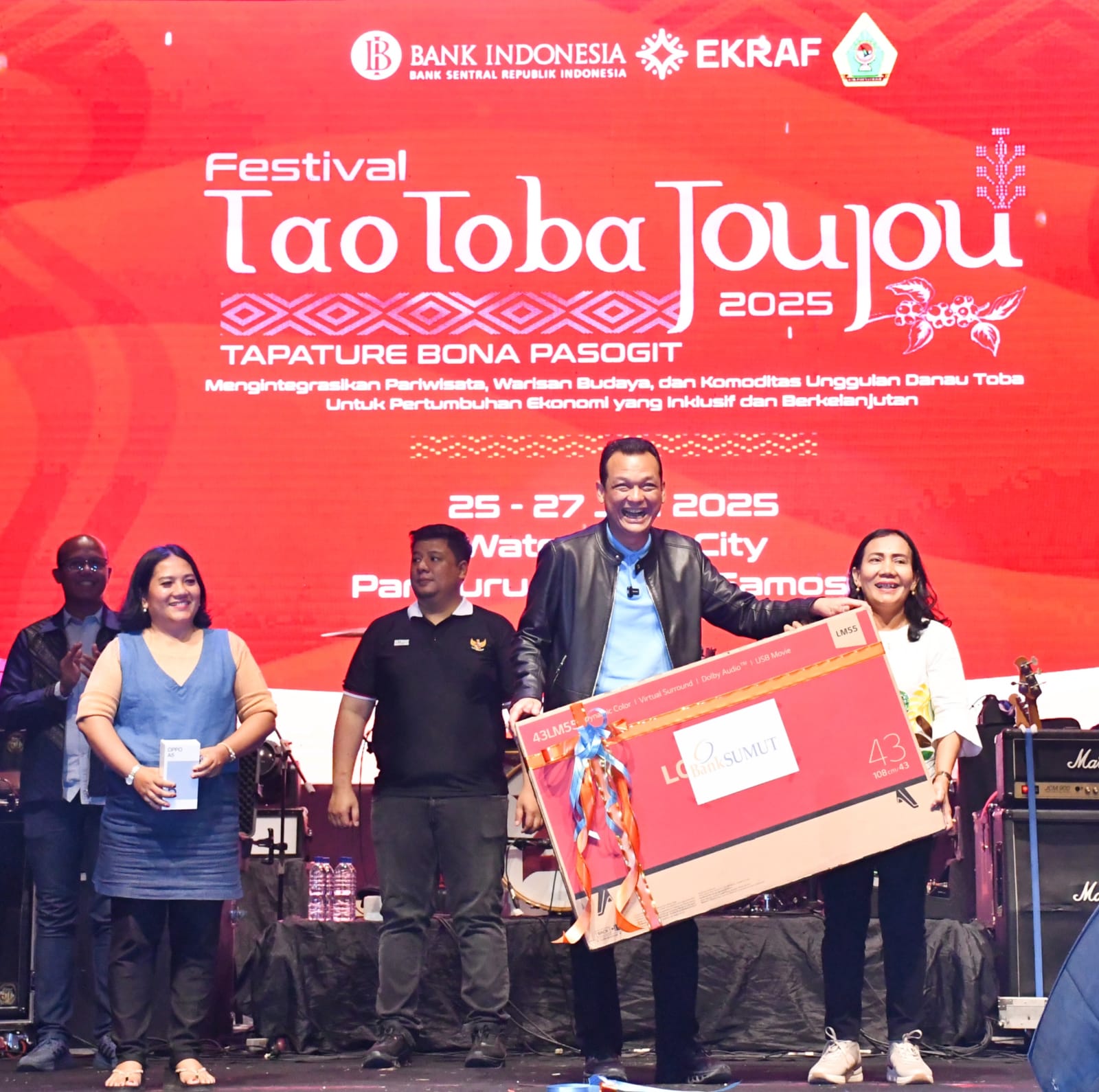 POSMETRO MEDAN – Dalam 3 hari, Festival Tao Toba Joujou 2025 menghasilkan transaksi UMKM 2,6 Milyar lebih. Hasil ini meningkat dari tahun lalu, grafik jumlah pengunjung diperkirakan sekitar 30 ribu-an. “Transaksi UMKM sampai pukul 18.00 wib sore ini 2,6 M. Ini lebih banyak dibanding tahun lalu. Hasilnya sangat memuaskan,” ungkap Kepala Perwakilan BI Sibolga, Riza Putera saat memberikan laporan dalam penutupan Festival Tao Toba Joujou 2025 di Halaman Gereja Katolik Santo Mikhael Pangururan, 27/07.