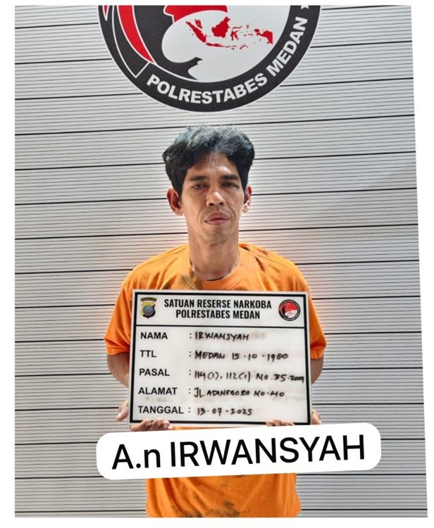 Kronologis penangkapan, pada hari Rabu tanggal 9 Juli 2025 sekitar pukul 11.00 WIB, petugas Sat Reserse Narkoba Polrestabes Medan mendapatkan informasi dari warga, bahwasanya di Jalan Karantina , Gang Sudi itu dijadikan tempat transaksi narkoba jenis sabu. Selanjutnya petugas melakukan penyelidikan dan pada hari Minggu tanggal 13 Juli 2025, petugas mendatangi seseorang laki – laki diduga sebagai penjual sabu di TKP dan memesan sabu tersebut. Kemudian saat menyerahkan sabu itu kepada petugas langsung pelaku ditangkap dan menyita barang bukti lainnya.