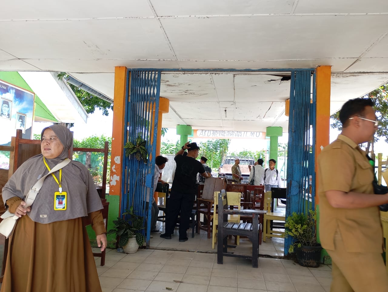 Dari pantauan di lokasi, Selasa siang, puluhan siswa mengangkati kursi dan meja dari seluruh ruang kelas di kawal oleh Polisi dan petugas satpol PP yang berjaga.