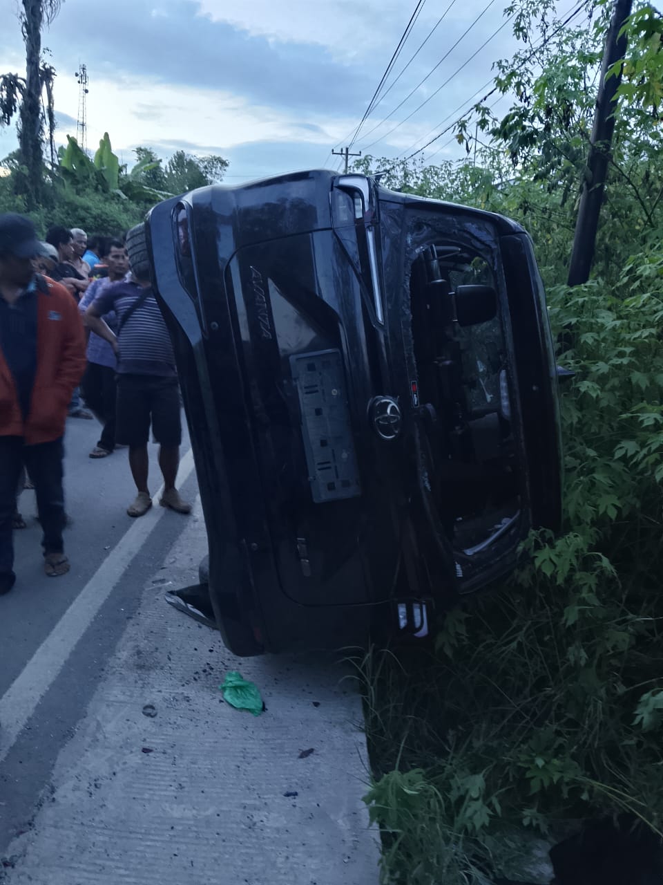 Polisi polres Toba yang tiba di lokasi langsung olah TKP dan membawa mobil dan jenazah pelaku ke RS Porsea.