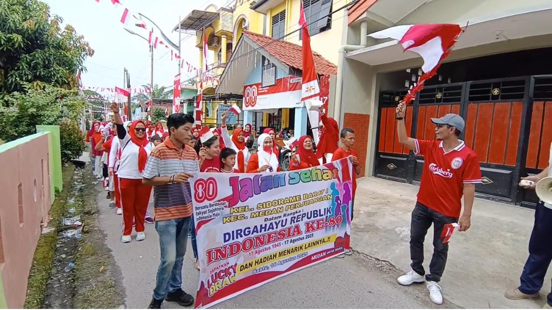 ”Giat ini sebagai bentuk wujud kebersamaan warga Sidorame Barat 1 dalam merayakan HUT RI ke 80. Di sini kita dapat menikmati hiburan Jalan Santai, Perlombaan serta hadiah-hadiah menarik lucky draw,” ucap Kristoman.