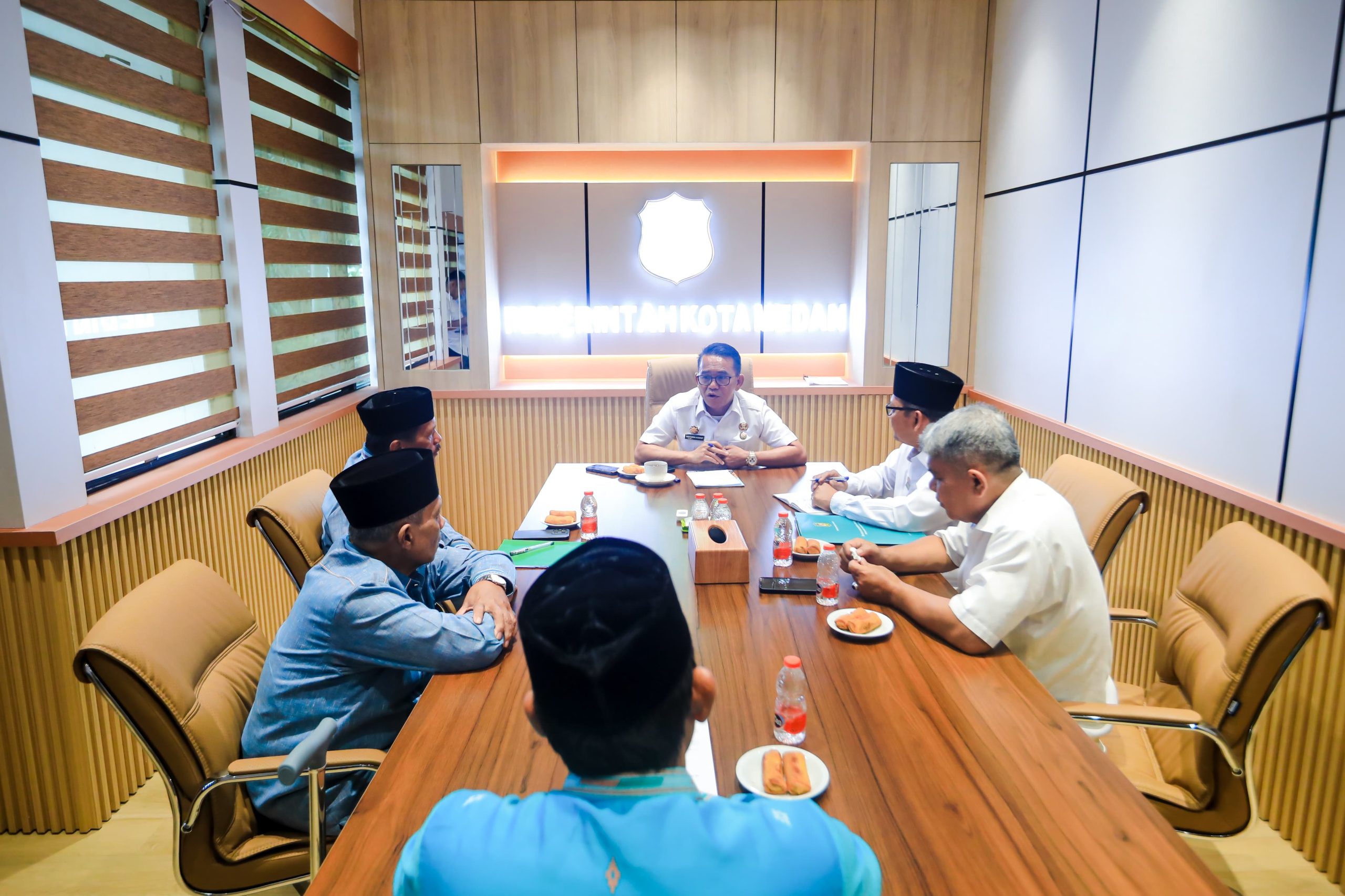 Wakil Wali Kota Medan Zakiyuddin Harahap ketika menerima audiensi Ketua IPQAH Kota Medan Syarifuddin Hazmi beserta pengurus lainnya di Balai Kota, Rabu (24/9/25).