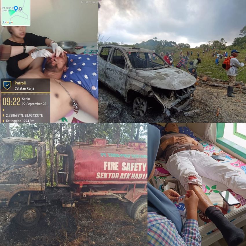 Selain itu, dua unit kendaraan operasional perusahaan turut mengalami kerusakan dan terbakar, yaitu mobil patroli security Aek Nauli dengan nomor polisi BK F 8711 HK dan mobil truk fire safety.