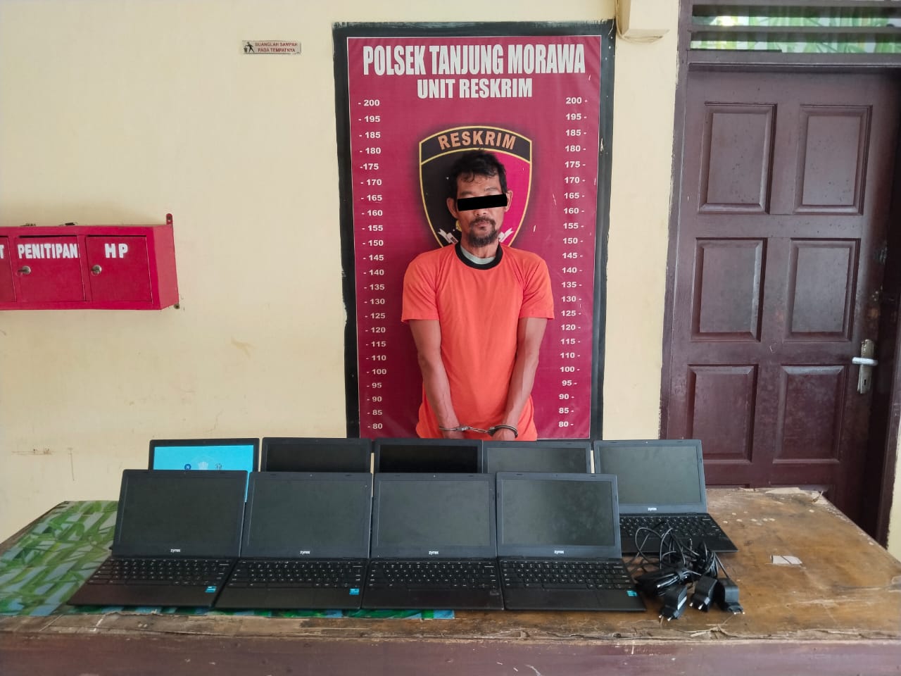 ” Dari pengungkapan berhasil diamankan barang bukti 9 unit laptop hasil curian, sementara 4 unit sudah dijual tersangka ke daerah Jermal Belawan,” ujar Kapolsek. Minggu 19/10/2025.