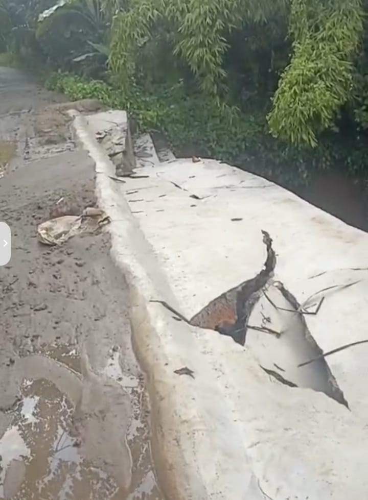 Kegiatan milik Dinas Sumber Daya Air Bina Marga Bina Kontruksi (SDABMBK) atau Dinas PU Kabupaten Deli Serdang ini kini hancur, cor coran lapuk langsung melorot kedalam jurang. Tampak retakan akibat tanah yang abrasi.