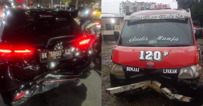 Saat persimpangan, angkot tersebut diduga menabrak bagian belakang mobil Toyota Yaris hitam bernomor polisi BK 1890 GX yang keluar dari Jalan Sunggal menuju Jalan Sei Batang Hari.