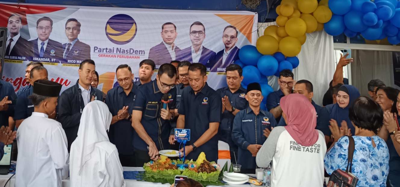 Kegiatan penyerahan bansos tersebut sekaligus juga dilakukan pemotongan tumpeng oleh seluruh pengurus DPD Partai NasDem Kota Medan yang sebelumnya mendengarkan pidato dari Ketua Umum Partai NasDem Surya Paloh secara hibrid bersama pengurus DPW dan DPD NasDem se-Indonesia.