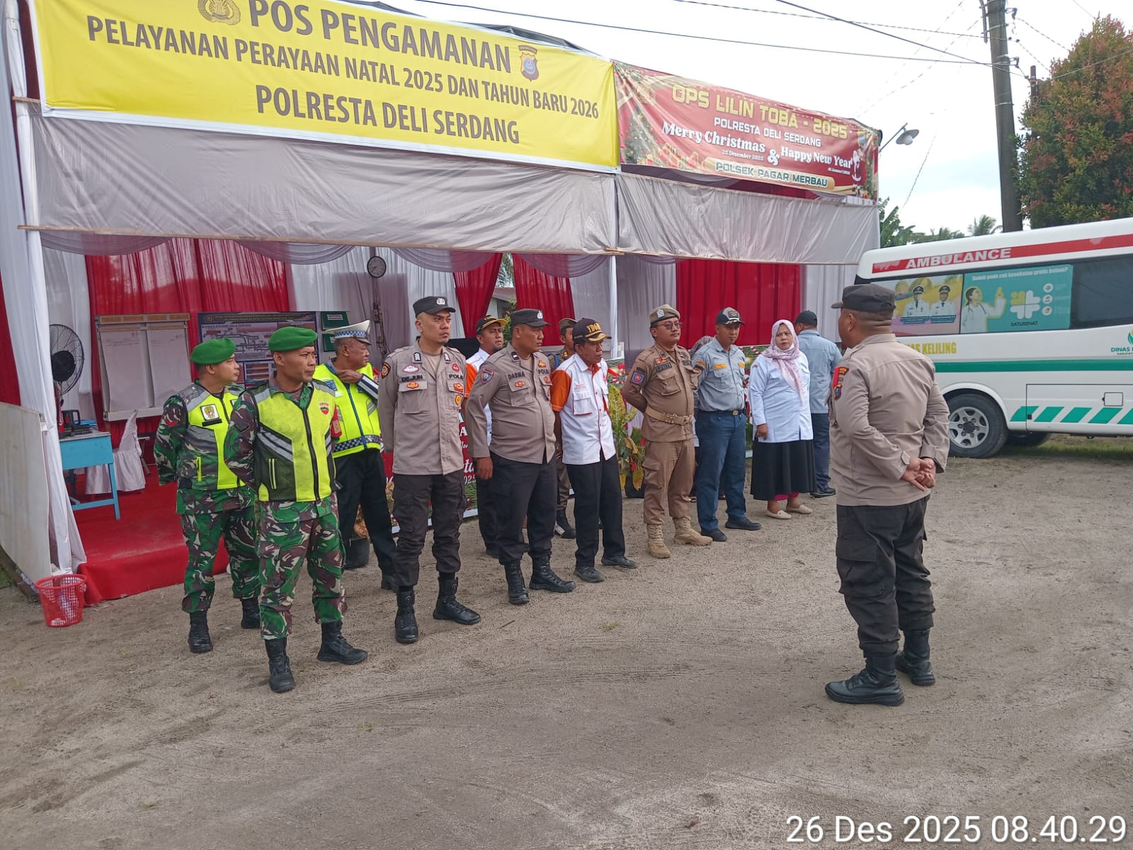 POSMETRO MEDAN – Pelaksanaan pengamanan perayaan Natal 20250 dan menyambut Tahun Baru 2026 hingga kini berjalan aman dan lancar di wilayah Kecamatan Pagar Merbau dan Kecamatan Lubukpakam,Jumat(26/12/2025).