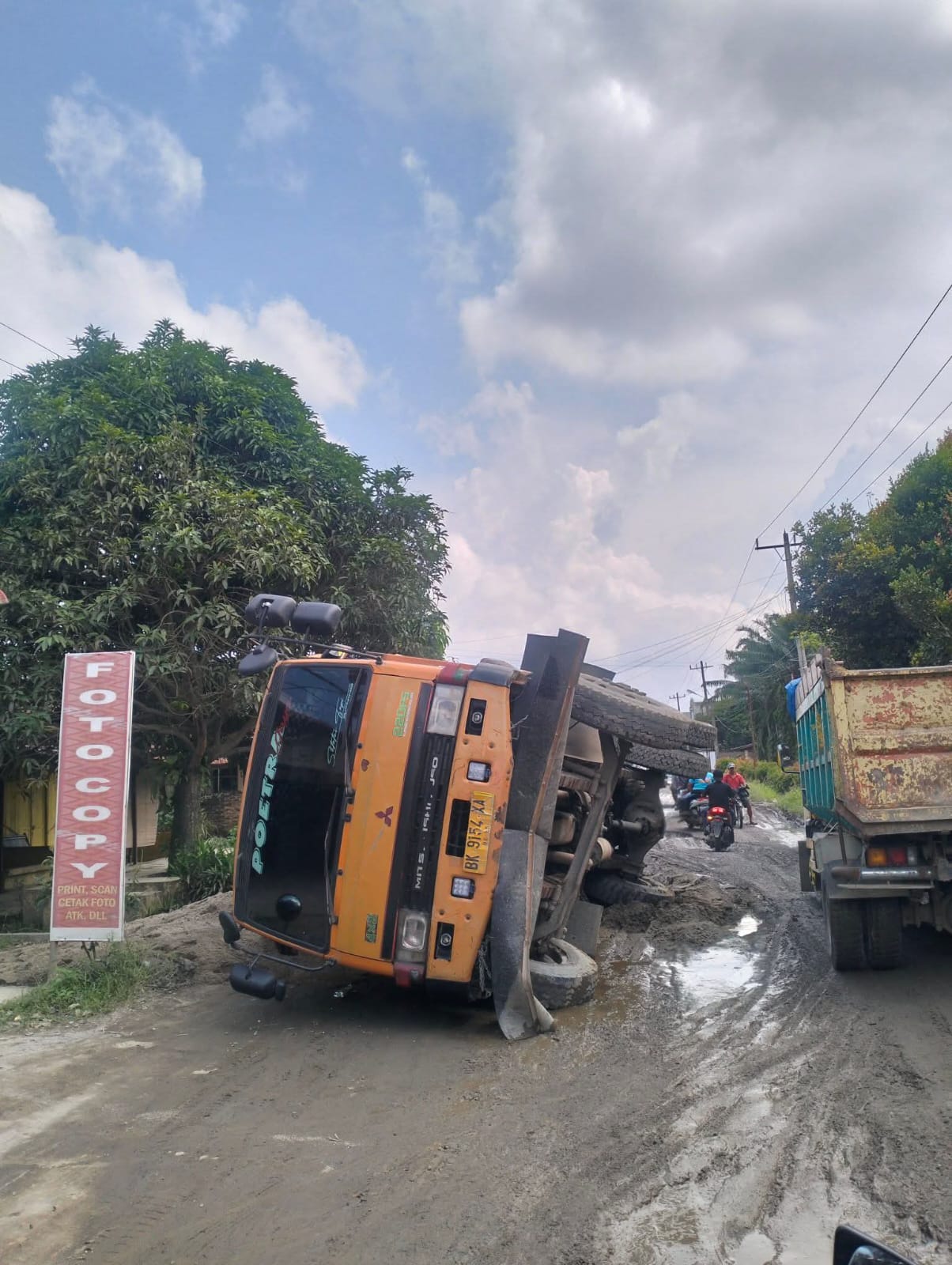 Truck Terbalik Akibat Jalan Galang yang Rusak Parah