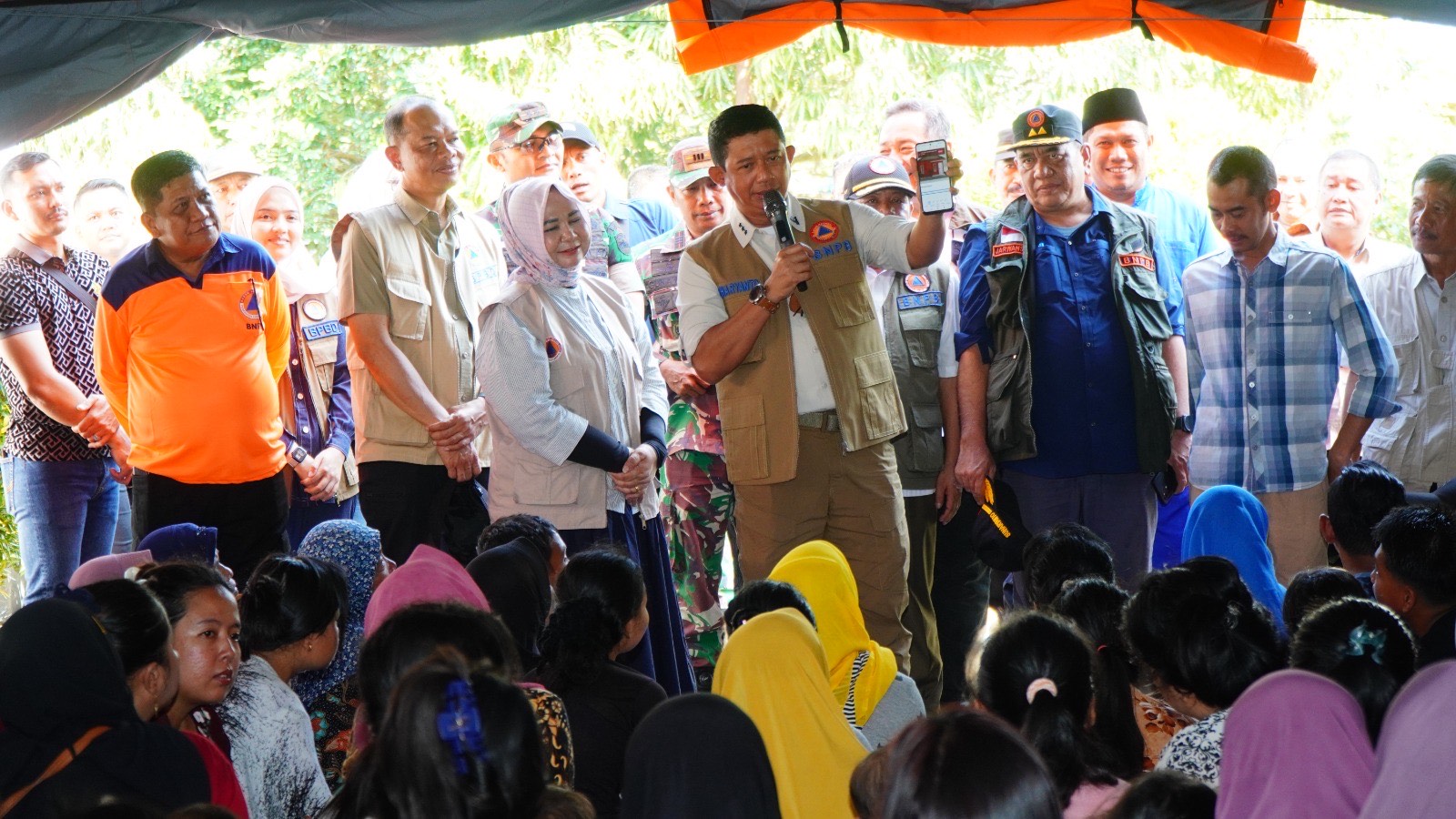 Kepala BNPB menyampaikan apresiasi langkah cepat Bupati Langkat Syah Afandin, bersama jajaran Pemkab Langkat dalam menangani banjir. Ia menegaskan pemerintah pusat melalui BNPB akan terus memberikan dukungan hingga kondisi di Langkat pulih sepenuhnya.