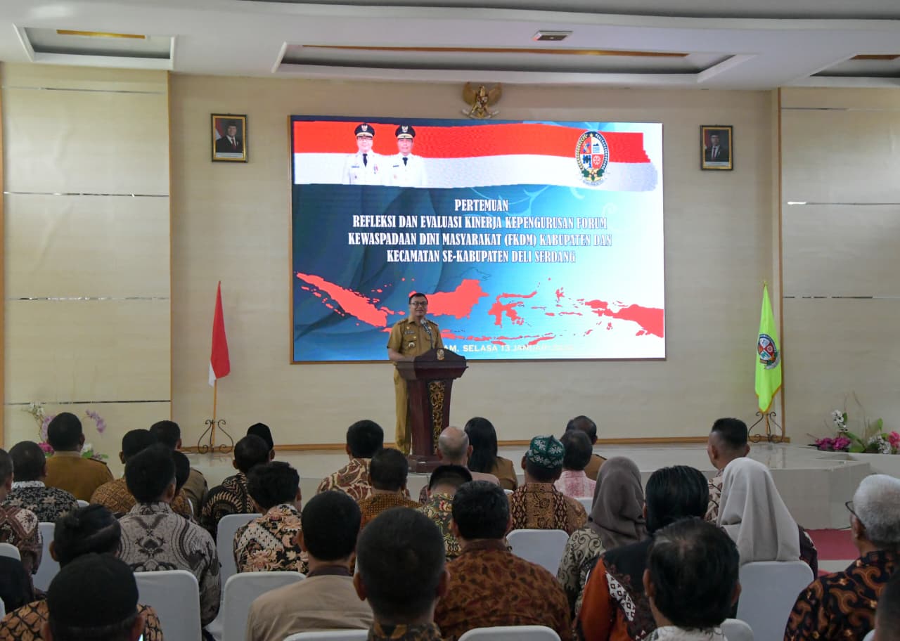 “FKDM itu bukan wartawan yang melaporkan peristiwa setelah kejadian, tetapi FKDM harus bekerja sebelum kejadian. Setiap gejala di masyarakat, sekecil apa pun, itu harus dilaporkan,” tegas Bupati Deli Serdang, dr H Asri Ludin Tambunan dalam arahannya, pada Pertemuan Refleksi dan Evaluasi Kinerja Kepengurusan FKDM Kabupaten dan Kecamatan se-Deli Serdang di Aula Cendana, Lantai II, Kantor Bupati Deli Serdang, Selasa (13/1/2026).