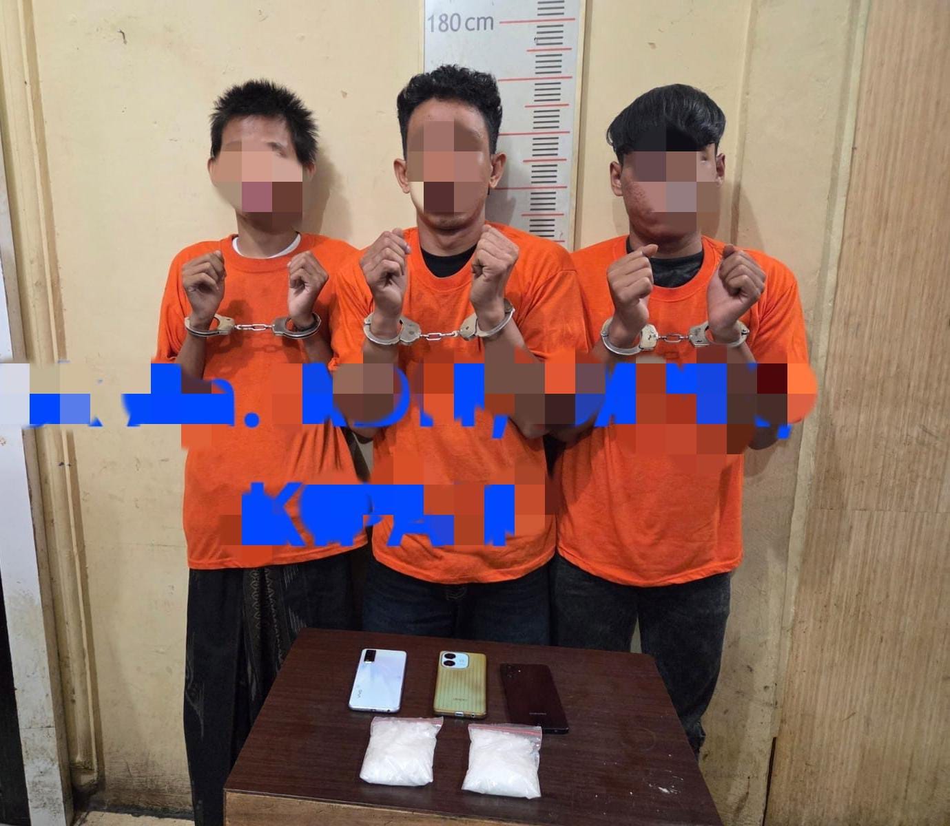 Dari tangan para diduga pelaku, petugas mengamankan barang bukti berupa dua bungkus plastik bening berisi narkotika jenis sabu dengan berat bruto 190,5 gram, tiga unit telepon genggam, serta satu unit sepeda motor Honda Scoopy.