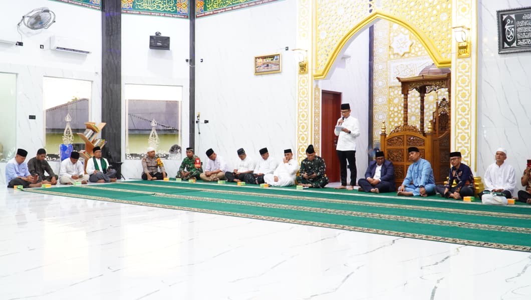 Sekda Amril menyampaikan salam dan pesan Bupati kepada seluruh jamaah yang hadir. Ia menegaskan Safari Ramadan bukan sekadar agenda rutin tahunan, melainkan wadah memperkuat ukhuwah Islamiyah sekaligus menyerap aspirasi masyarakat secara langsung.